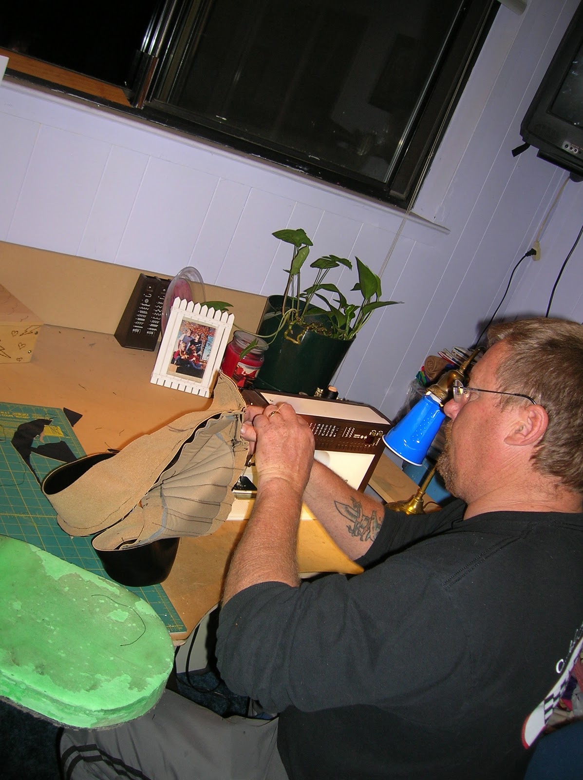 cody fabbed up some 10 3/4 rigid shocks (actually struts). We got the idea from the some dude on the internet. Removed the springs, drilled a hole to drain the fluid, steel-wooled them and cleaned with carb cleaner. then we welded the rod to body of the shock. painted the springs black and put them back on by welding it to the outside of the shock. The honda chopper is changing a little too. Cody is making a different seat so the lady can ride too. He shaped the metal himself and bought the padding (yoga mats that are the exact same thing as motorcycle seat padding but way cheaper!). Stitching for leather by Ma Brouwers. he also added some chimp bars.